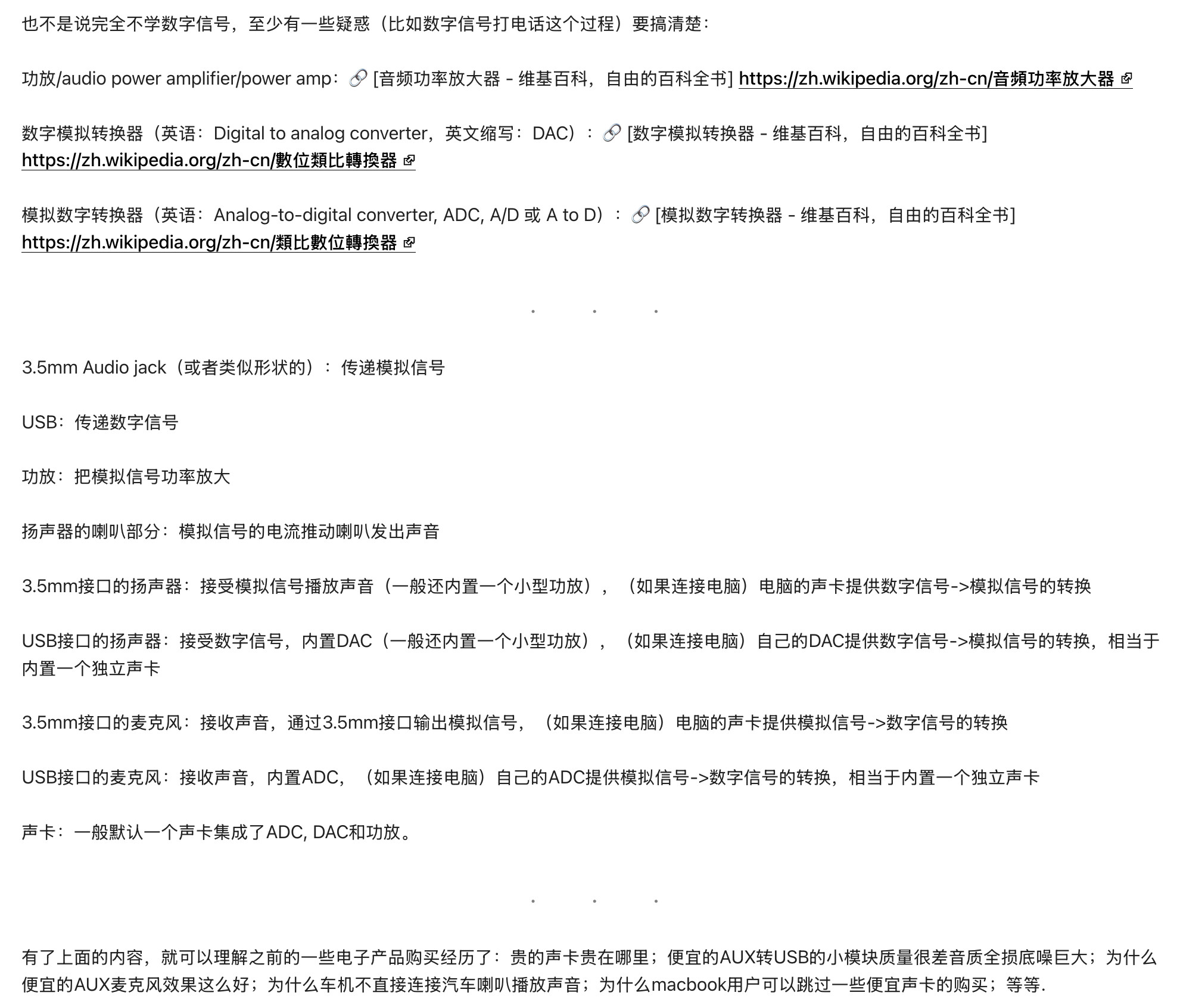 2025-09-20补充:还是要系统学一下数字信号、模拟信号、DAC、ADC在现实生活中的应用,这样才能更好理解这些模块在声卡中的作用: