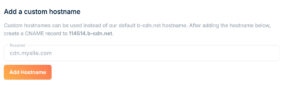 到这一步就已经可以通过b-cdn.net访问存储桶里面的文件了,要想换成自定义域名,比如static.example.com,就去添加hostname:添加一条cname解析指向xxx.b-cdn.net,然后验证SSL证书
