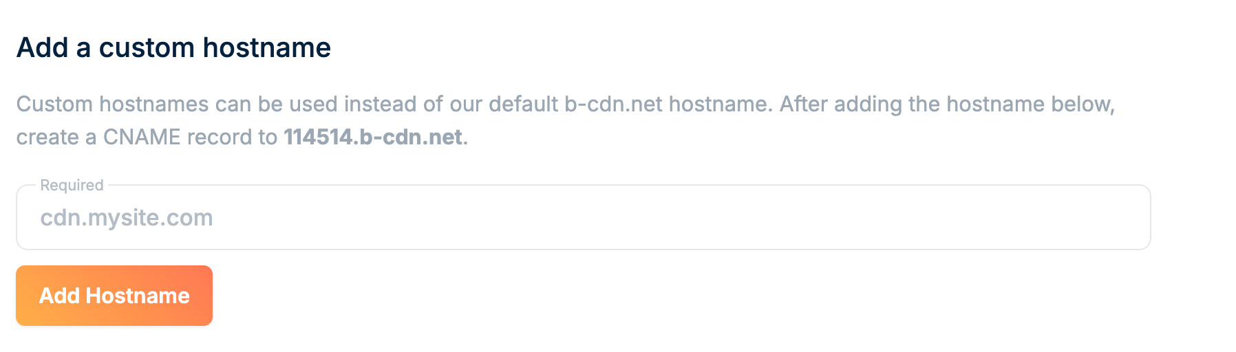 到这一步就已经可以通过b-cdn.net访问存储桶里面的文件了,要想换成自定义域名,比如static.example.com,就去添加hostname:添加一条cname解析指向xxx.b-cdn.net,然后验证SSL证书